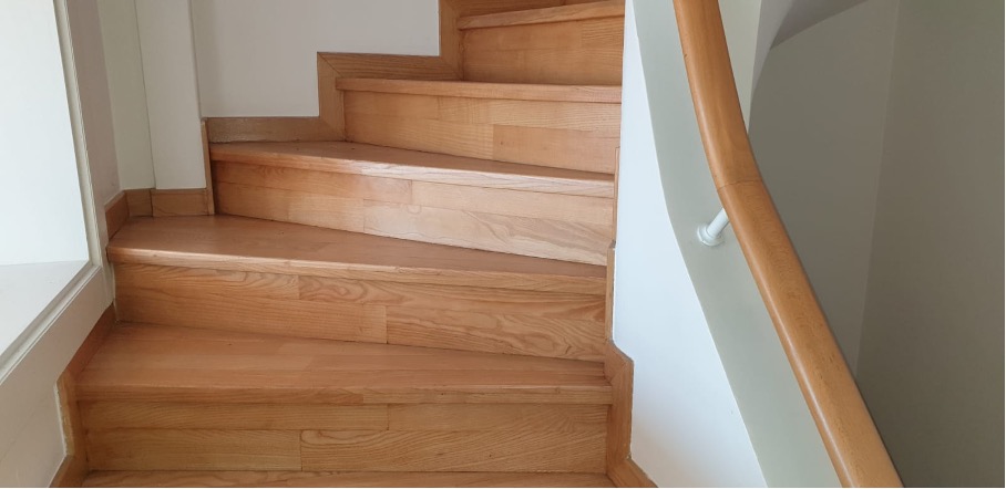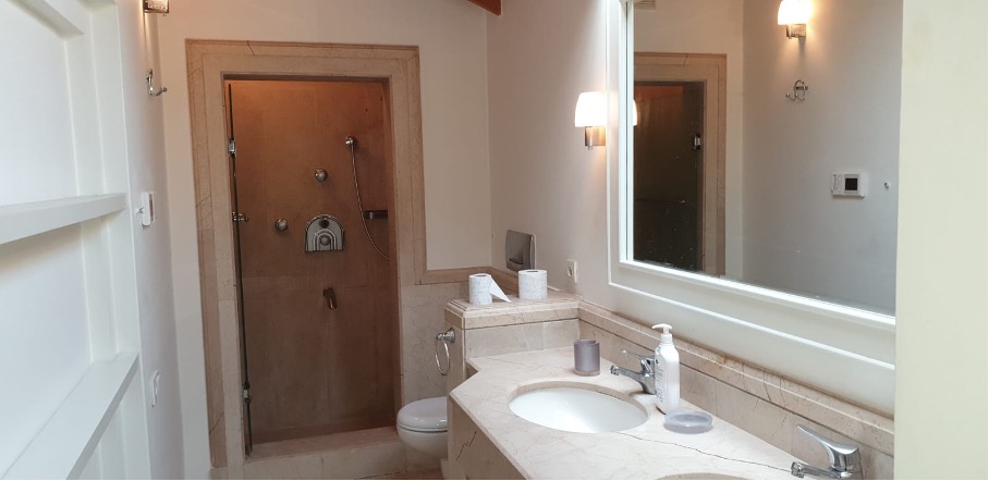 Der Boden ist aus natürlichem Eschenholz und türkischem Naturstein (Kufeki) im Badezimmer und als Wohndekoration.
